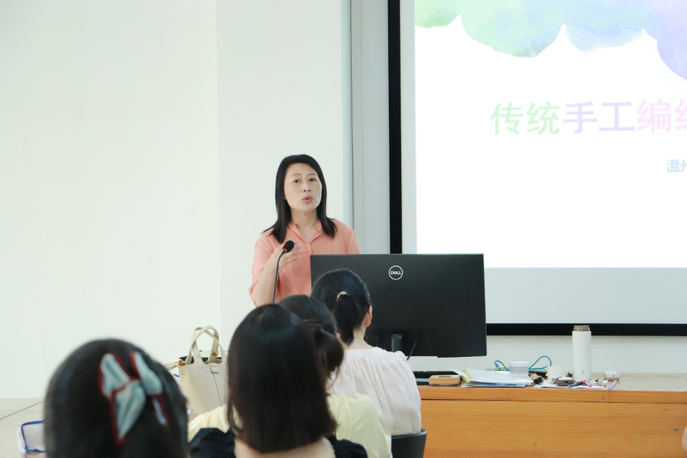 这次学习项目由温州理工学院设计艺术学院的副教授苗颖、副教授叶洲荣以及曹赛娜老师共同执教。本次课程旨在“文化创新创造”及“美育体系”的背景下,将我国优秀手工编织工艺引入小学美育课程教学与课外美育实践拓展中,以提升小学教师的手工编织技能,拓宽其艺术素质,增强教师创新美育教学设计的能力