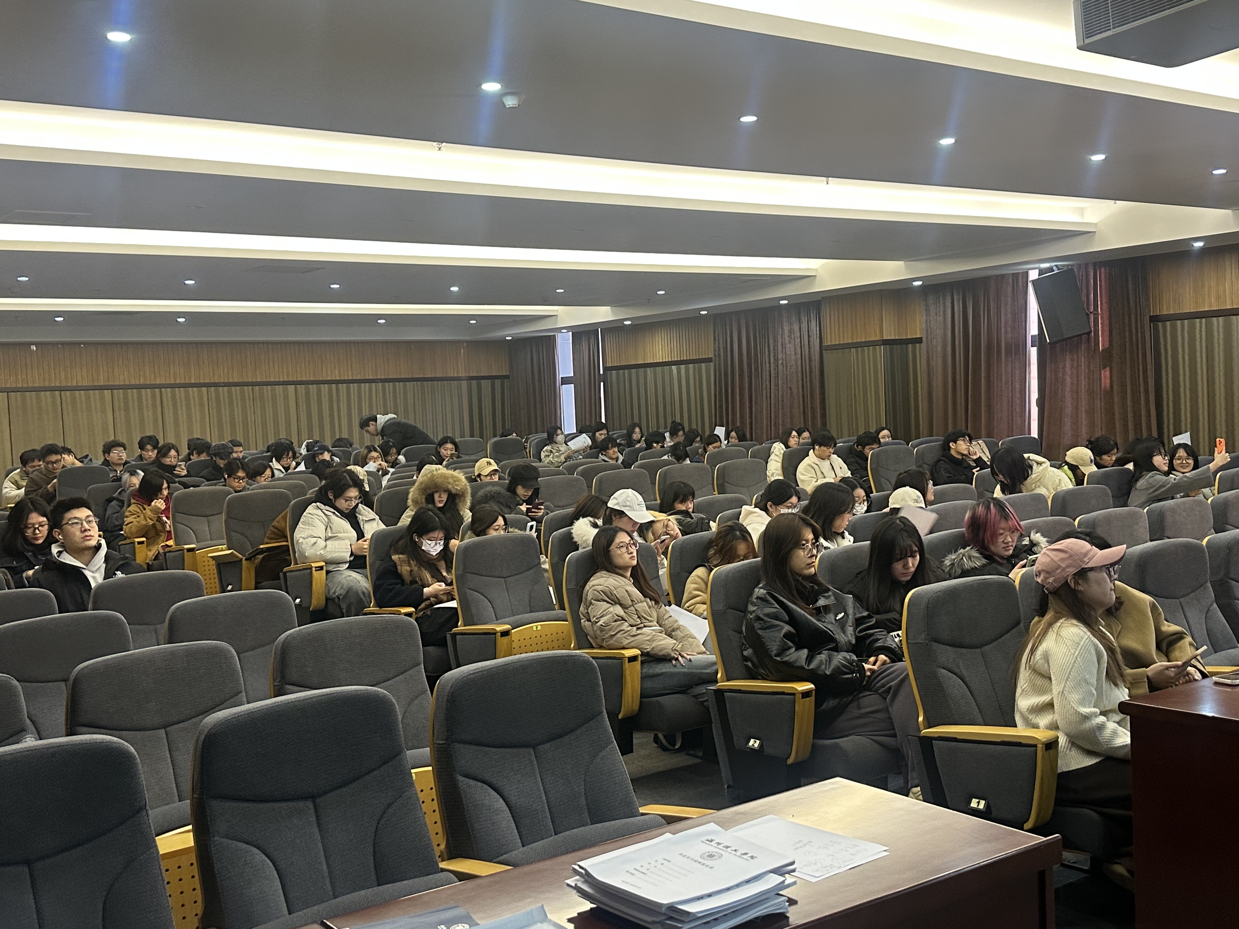 20251225日下午,设计艺术学院在茶山行政楼316召开了2022级毕业实习动员大会。设计艺术学院副院长叶芳、系主任周洁茹、教研室副主任曹杰、毕业实习指导教师及2022级全体学生参加了本次动员大会,会议由叶芳老师主持。